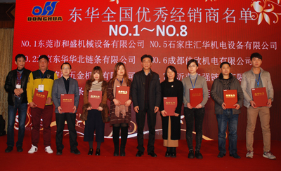 會議期間,宣董事長向東華16名2015年度“優(yōu)秀經(jīng)銷商”和盾牌6名“優(yōu)秀經(jīng)銷商”頒發(fā)了榮譽(yù)證書,并合影留戀。