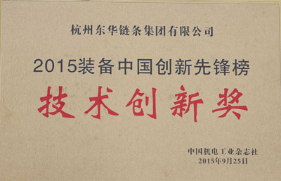 2015年,由中國機械工業聯合會指導,《中國機電工業》雜志社主辦的2015“裝備中國創新企業年會”暨“裝備中國創新先鋒榜”頒發了創新榜樣獎、產品創新獎、管理創新獎、營銷創新獎、綠色創新獎、技術創新獎,有50多位獲獎企業代表在此共享榮耀。東華集團曾于2013年獲得該獎項。