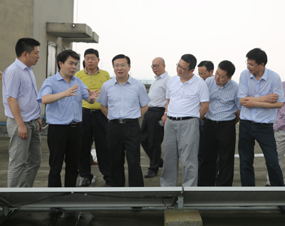 最后,徐書記一行參觀了位于公司4座廠房樓頂,占地近2萬平方米,年發電量120萬千瓦時的光伏發電項目。東華是迄今為止余杭區建設規模最大的光伏發電應用企業,也是余杭經濟技術開發區第一家試點啟動光伏發電的企業。袁副總向徐書記一行匯報了光伏發電項目自去年9月10日運行以來取得的成效。徐書記說:“光伏發電是一種新型能源環保項目,不僅節能降耗,還能緩解企業夏季用電緊張,適合東華這樣的大型制造企業,非常不錯。”
