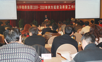 1月26日,東華集團在臨平賓館隆重召開2009至2010年供方配套及質量工作會議??偨浝韽埵缽姟⒖偣こ處熑~斌、副總經理廖杭州、袁立華、董事宣志榮、各事業部部長、60余家供方代表及東華相關人員參加會議。