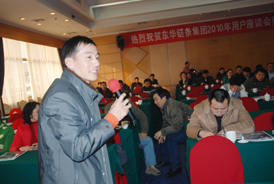 首先,董事長宣碧華致歡迎辭(另刊)。他說,一年一度的東華集團(tuán)用戶座談會在天豪大酒店召開。首先非常感謝我們的經(jīng)銷商、主機(jī)廠、用戶一年來對東華的大力支持,使我們度過了2009年的金融危機(jī),也非常感謝以張總為代表的領(lǐng)導(dǎo)班子兢兢業(yè)業(yè),一年來的辛勤勞動;同時感謝戰(zhàn)斗在銷售線上的業(yè)務(wù)員的辛勤工作,取得好的銷售業(yè)績。