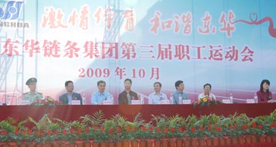 開幕式上,總經(jīng)理張世強致開幕辭。他說,在熱烈慶祝祖國成立60周年的喜慶日子里,我們又迎來了東華集團(tuán)創(chuàng)建18周年和第三屆職工運動會的勝利召開。今天,我們19支隊伍的500多名運動員,將匯聚成一支蓬勃向上的洪流,在運動場上切磋技藝,比試身手、互相學(xué)習(xí)、共同提高。本次盛會,將再次展示我們東華人的精神風(fēng)貌,是企業(yè)文化的一次盛會,也是展示自身價值、凝聚人心、團(tuán)結(jié)拼搏的一次盛會。必將進(jìn)一步提升企業(yè)文化,弘揚企業(yè)精神,為東華集團(tuán)的全面發(fā)展注入新活力。