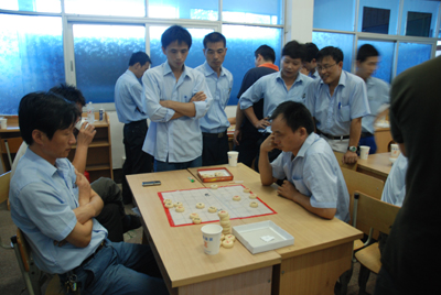 為了運動會當(dāng)天完成所有運動項目的比賽,本屆運動會規(guī)定了個人限報兩個項目,不包括團體賽和每個單項各分工會的報名人數(shù)最多不能超過2名。因此,9月中下旬以來,各部門、分廠均紛紛舉行了內(nèi)部淘汰賽,以派出最優(yōu)秀的員工參賽。9月26日,舉行了男女乒乓球、羽毛球半決賽。9月27日,舉行了男子圍棋、象棋;女子五子棋決賽。獲得圍棋前三名的是徐凱、朱寶德、黃海濱;獲得象棋前三名的是張建明、呂鐵軍、潘道元;獲得五子棋前三名的是肖輝、王衛(wèi)玲、龔娟。本屆運動會除圍棋外,個人項目均取前六名,團體項目取前八名,集團將在運動會當(dāng)天向獲獎運動員和優(yōu)秀團體頒發(fā)榮譽證書和錦旗,并給予一定的物質(zhì)獎勵。