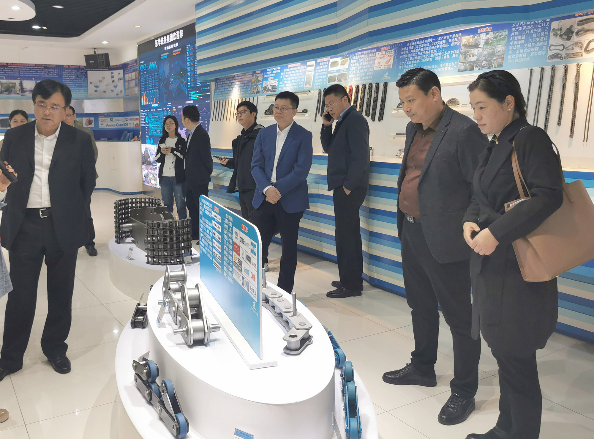 胡主任一行聽取介紹后,對東華的行業地位、綜合實力、四全兩化建設取得的成就表示贊許。他說,東華鏈條不愧是居國內鏈傳動行業第一,世界鏈傳動行業前二位的企業,生產三萬多種鏈條,十萬多個規格,廣泛應用于社會各行各業。安徽省有許多大型的機械企業,相信你們都有配套,希望你們多到安徽參觀交流,與我們本土企業有更多的合作。