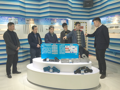 調研中,宣成副董事長、袁副總陪同調研組參觀了產品展廳,向客人介紹了世界鏈條發(fā)展史、中國鏈條發(fā)展史和公司以細分市場劃分的傳動鏈、輸送鏈、扶梯鏈、板式鏈等十幾大類產品的特色、特點和創(chuàng)新。隨后,陪同客人參觀了傳動鏈事業(yè)部、板式鏈事業(yè)部、材料零件事業(yè)部生產現場,重點參觀了公司投資二千多萬元新建的采用環(huán)保新型工藝淘汰原酸洗冷軋線,調研組領導對公司整潔的生產現場、精良的裝備、精神飽滿的員工給予好評。