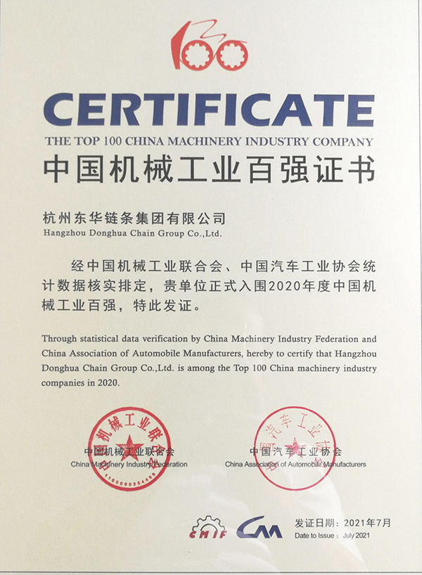 東華鏈條集團再次榮登中國機械工業(yè)百強榜,排名第55位,這是東華鏈條集團連續(xù)六年榮登中國機械工業(yè)百強榜,也是中國鏈傳動行業(yè)唯一上榜企業(yè),展現(xiàn)出東華強勁的健康發(fā)展活力。