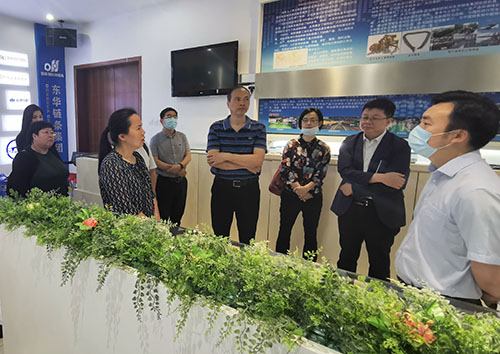 本次區政協科技界別組委員一行主要到東華了解公司技能人才評定、博士后科研工作站及人才引進培養等方面的情況。廖副總等領導陪同政協人員參觀了集團新區生產基地、徐長明鉗工技能大師工作室、展廳等。管理部副總經理劉冬根向大家介紹了東華在人才引進、工匠培養、博士后科研工作站建設等方面的情況。