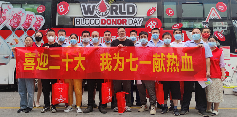 7月18日,為喜迎二十大的召開和慶祝第19個世界獻血者日,東華鏈條黨政工團共同組織“我為七一獻熱血”活動,東華員工積極參與獻血活動,最終95人獻血。7人加入造血干細胞捐獻志愿者。