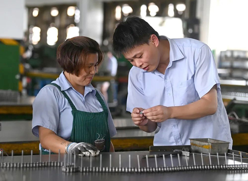 十年前,與所有應(yīng)屆大學(xué)生一樣,最初兩年的黃健一直跟著師傅學(xué)技術(shù)。第一個(gè)崗位是模具維修,這段經(jīng)歷讓黃健對(duì)公司、對(duì)生產(chǎn)、對(duì)產(chǎn)品有了直觀而更深刻的認(rèn)識(shí)。黃健發(fā)現(xiàn),理論和現(xiàn)實(shí)有很大的差距,真正進(jìn)入崗位后,很多知識(shí)不夠用。他在公司遇到幾個(gè)好師傅,他說好師傅就是面對(duì)他們這些“菜鳥”,會(huì)耐心講解、傾囊相授、在關(guān)鍵步驟上指點(diǎn)、會(huì)把握方向。跟著師傅日積月累的學(xué)習(xí)不僅讓黃健的技術(shù)日益精湛,也讓他的思想逐漸成熟。做一名好工匠的想法在他的腦海里悄悄萌芽。他的工作崗位也從模具維修變化到模具加工,再到模具設(shè)計(jì)。慢慢地,黃健具備了可以獨(dú)立完成一個(gè)工裝模具從設(shè)計(jì)、加工、安裝、調(diào)試全流程的能力。通過學(xué)習(xí)提升自己的職業(yè)技能的同時(shí),他也通過學(xué)習(xí)改變著自己的崗位,模具維修到模具加工再到模具設(shè)計(jì),直至現(xiàn)在成為非標(biāo)鏈自動(dòng)裝配設(shè)備設(shè)計(jì)開發(fā)項(xiàng)目負(fù)責(zé)人,實(shí)現(xiàn)從機(jī)械結(jié)構(gòu)設(shè)計(jì)、電路設(shè)計(jì)、電氣編程、設(shè)備生產(chǎn)線開發(fā)調(diào)試一體化。