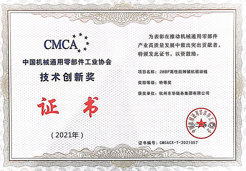 東華鏈條10項高端產品及裝備獲中國機械通用零部件行業技術創新獎