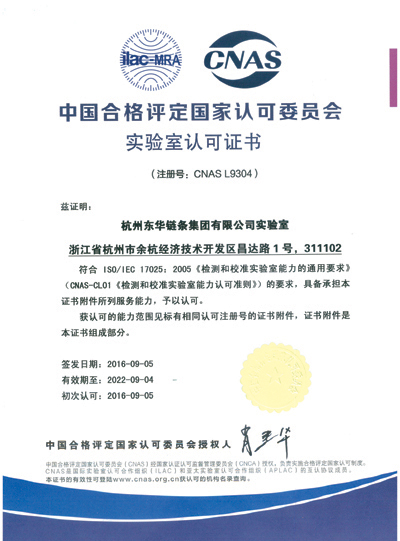 CNAS認可資格的取得,標志著東華鏈條集團實驗室的檢測能力達到了國家級水平,也是集團公司不斷滿足客戶要求,實現公司爭創世界第一的鏈傳動企業的目標具有里程碑意義的重大成果。
