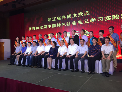 日前,浙江省各民主黨派堅持和發展中國特色社會主義學習實踐活動宣傳展示會在杭州召開。會議共表彰了22位浙江省各民主黨派堅持和發展中國特色社會主義學習實踐活動先進個人,我集團董事長宣碧華榮獲“浙江省民主黨派學習實踐活動先進個人”稱號,成為浙江省民建3位先進個人受到表彰