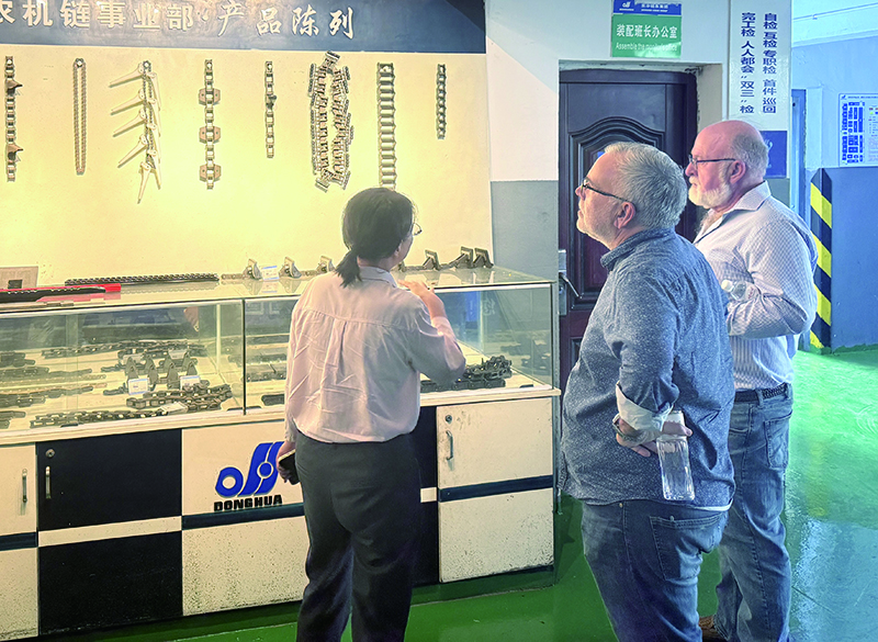隨后,客戶參觀了公司展廳。通過豐富的產(chǎn)品實物、詳實的介紹及多媒體演示,客戶全面了解了東華農(nóng)機(jī)鏈的發(fā)展歷程、技術(shù)研發(fā)實力、全系列產(chǎn)品矩陣及在全球市場的應(yīng)用成果。客戶對東華農(nóng)機(jī)鏈在鏈條領(lǐng)域,尤其在高強(qiáng)度、高耐磨性銷合鏈產(chǎn)品方面的持續(xù)創(chuàng)新與取得的成效表示贊賞。